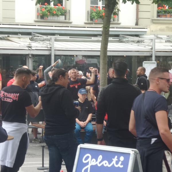 Sjajna atmosfera vlada na trgovima, Delije su došle u Bern u velikom broju i veoma su raspoložene za pesmu.
