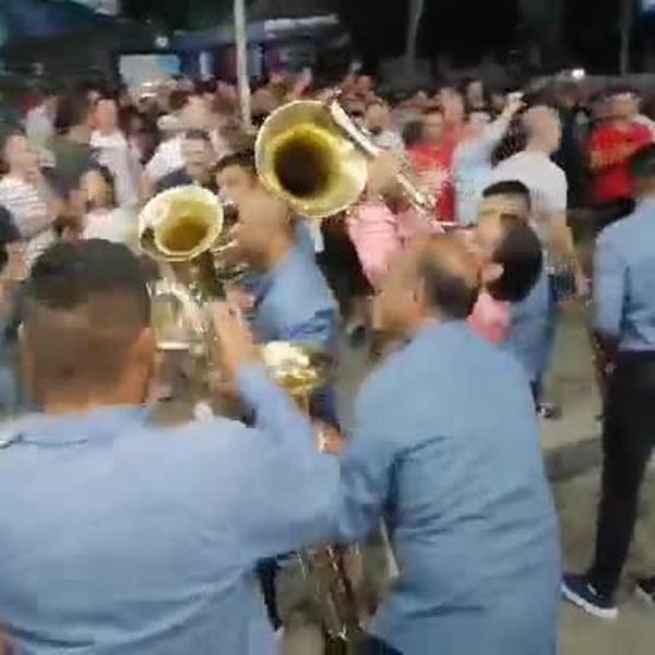 U centru je bio njegov lik sa megafonom, što simboliše to da je on prvi koji je doneo ovaj rekvizit na tribinu i vodio navijanje preko njega.