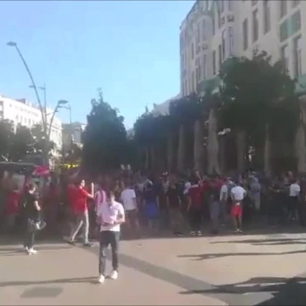 Oni su se okupili kod hotela Moskva, gde uveliko slave svoje prijateljstvo i pevaju pesme u čast svojih klubova.