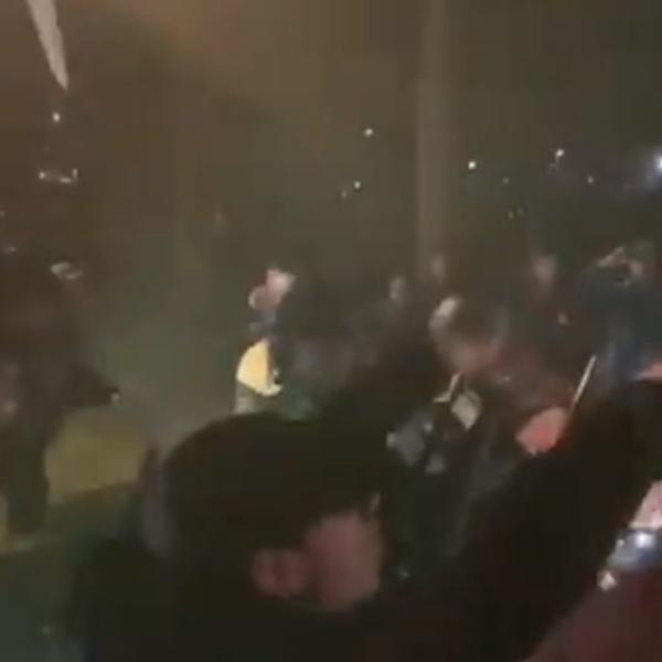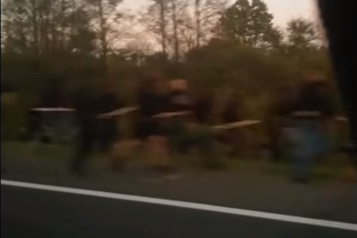Pojavio se snimak iz jednog autobusa gde se vide mladići kako sa palicama, letvama, štanglama trče za drugom grupom mladića.