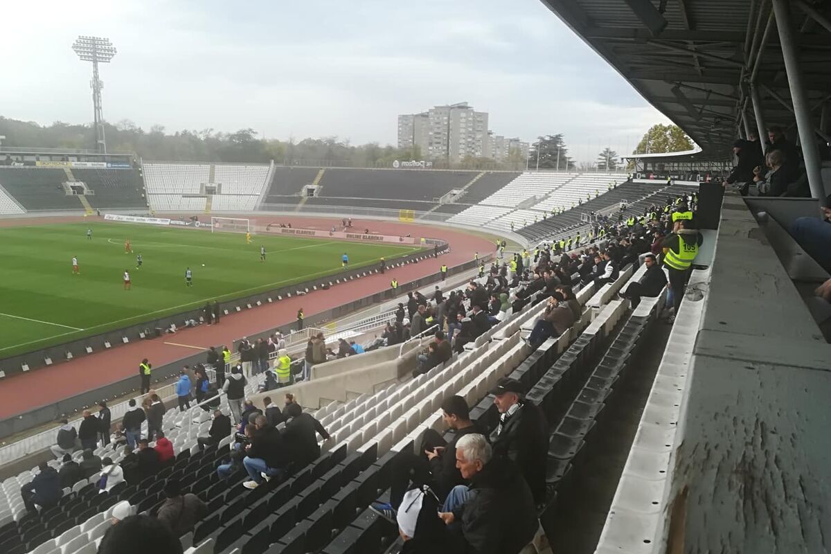 Tribine se maltene prazne, a osim skandiranja Zabranjenih na početku utakmice, nije se čula pesma sa tribina,