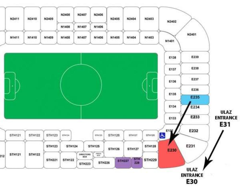 - Želimo da Vas obavestimo da su na ulaznici koju ste dobili za utakmicu Mančester junajted - FK Partizan, navedeni netačni podaci o lokaciji i da ulaz naveden na ulaznici neće raditi. Po dolasku na Old Traford, molimo vas da pređete na ulaz E30, gde ćete čekirati ulaznicu i proći kroz bezbedonosnu proveru. Nakon što uspešno uđete na stadion, molimo vas da se uputite u blok (sektor) E230, gde će biti slobodnih nenumerisanih mesta. Napomena, obaveštenje važi samo za navedeni sektor E235 - stoji na klupskom sajtu u poruci upućenoj direktno ljudima koji su obezbedili svoje karte.