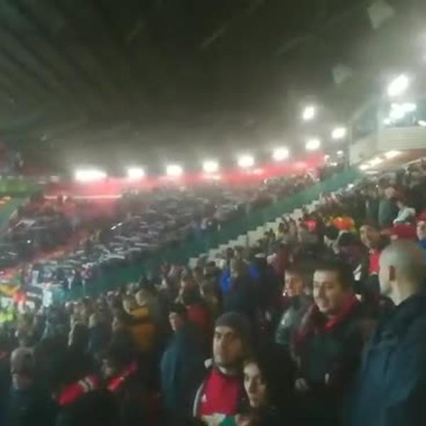 Grobara ima oko hiljadu na Old Trafordu, a najviše su zagrmeli kada su skandirali ubijenom vođi Alkatraza, koji je svirepo ubijen na Voždovcu sa čak devet metaka.