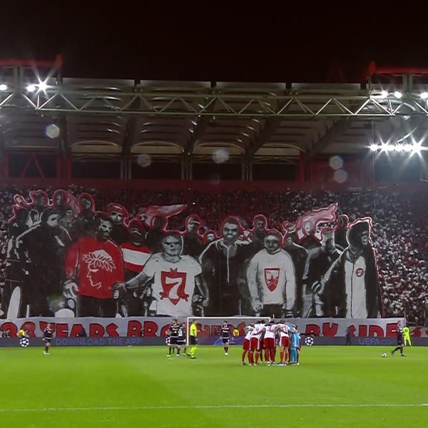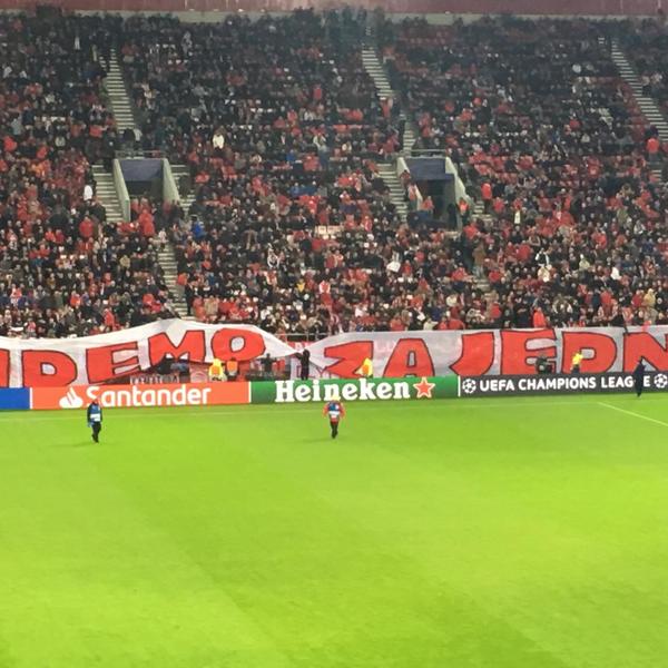 1' Utakmica je počela, a dok se ništa zanimljivo ne dogodi na terenu, vi uživajte u divnoj koreografiji crveno-bele braće.