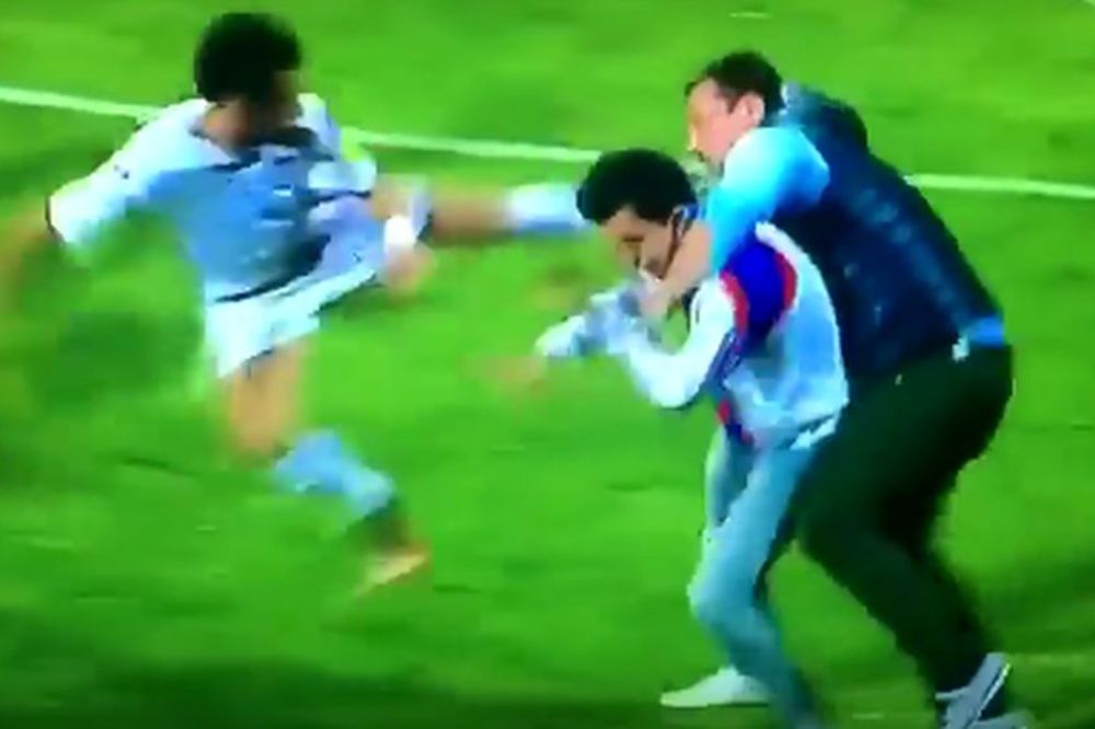 Jedan od gostujućih huligana je uz podršku uleteo na teren