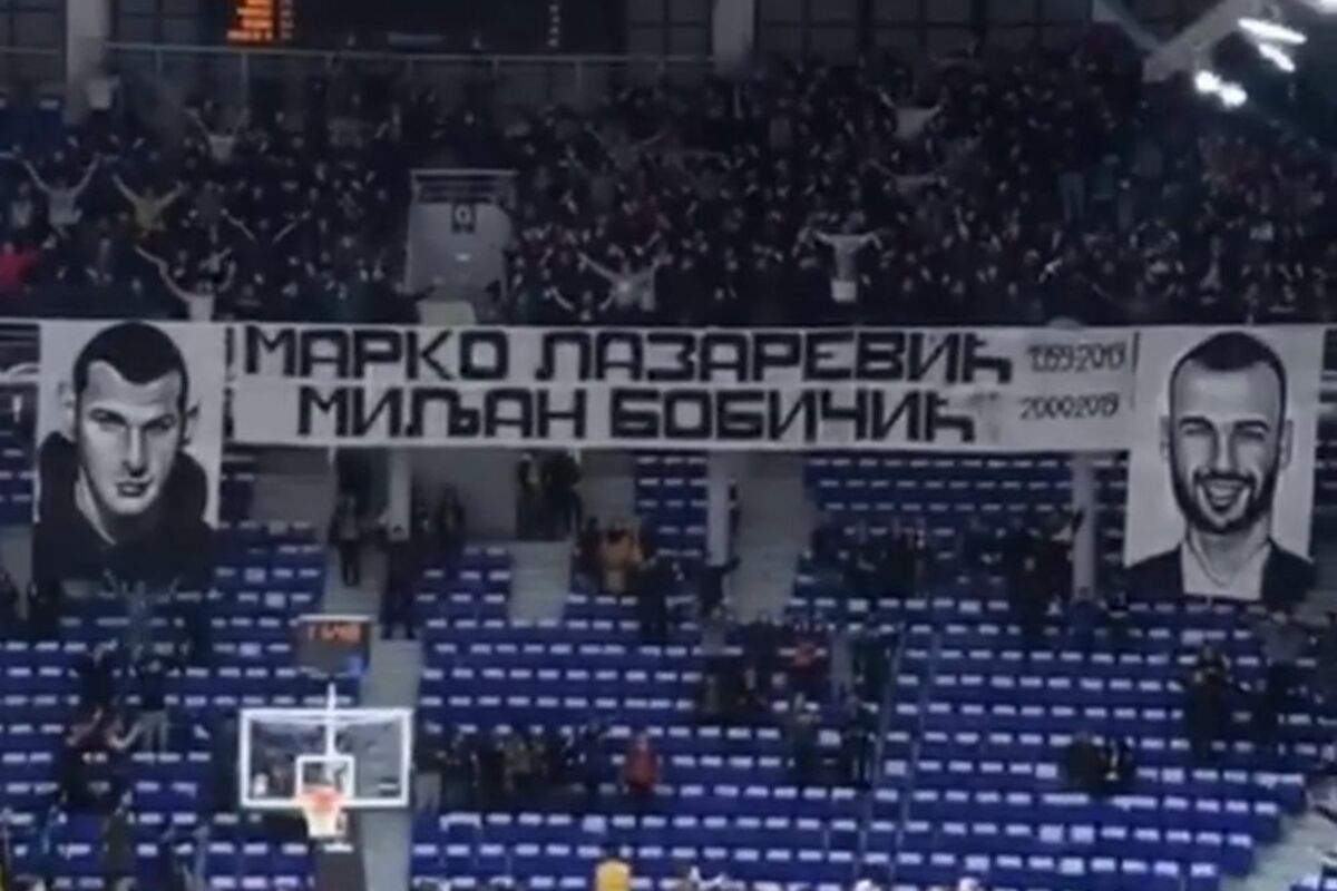 Poznatiji kao Varvari, navijači Budućnosti su istakli poruke pre svega za dvojicu svojih pripadnika koji su poginuli u stravičnoj saobraćajnoj nesreći, ali imali i jednu poruku povodom političke situacije u Crnoj Gori.