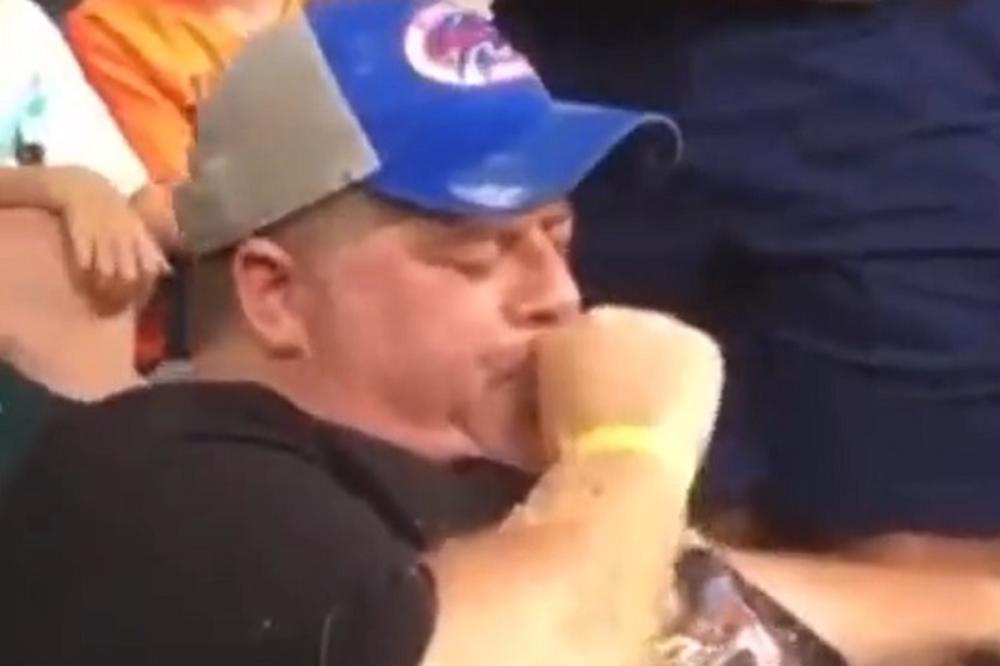 Naime, na jednoj bejzbol utakmici, navijač se toliko napio i prejeo da nije mogao da se suzdrži pa je počeo da povraća po sebi.