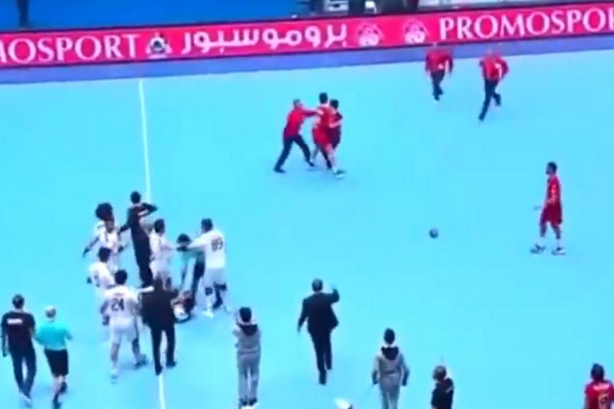 Počeli su raznim predmetima gađati gostujuće rukometaše, jedan navijač je utrčao u teren ne bi li se s njima fizički obračunao, a utakmica je u tom trenutku morala da bude prekinuta.
