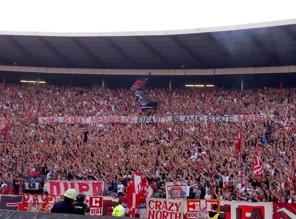 Na prepunom severu bilo je mnogo zastava koje su dodale čitavom ambijentu, ali je jedna "ukrala" pažnju svih prisutnih na stadionu. Da li je primećujete?