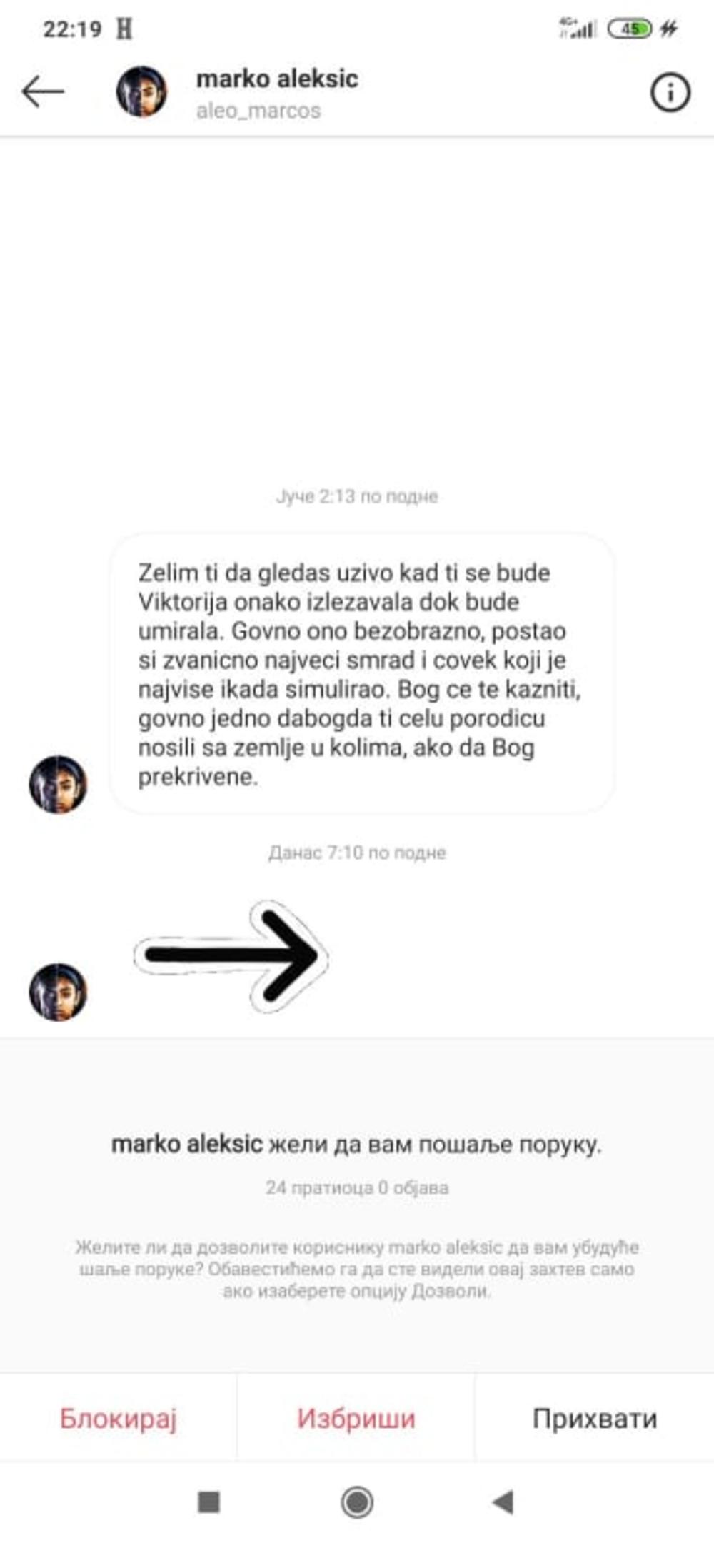 Kao što ste mogli da pročitate, ovo je otišlo daleko od navijačkog "diskursa", već su ova dva veoma nesmotrena momka doslovno pretili Ostojiću da će mu polomiti kičmu, ali i poželeli da se nešto veoma loše desi njegovim bližnjim...