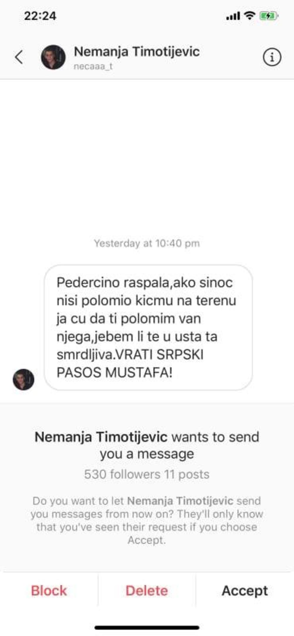 Ljuti navijači večitog rivala poslali su mu neke pretnje koje doslovno ne smemo da vam napišemo, pa ćemo vam ih stoga samo ovde nalepiti kako biste sami videli koliko "bolest ne bira".