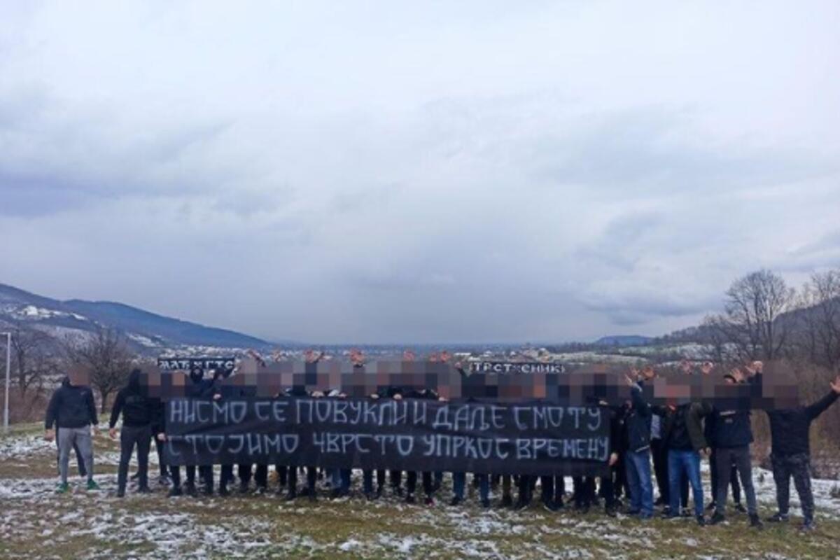 - Nismo se povukli, i dalje smo tu, stojimo čvrsto uprkos vremenu - piše na paroli koju drže dvadesetak momaka.