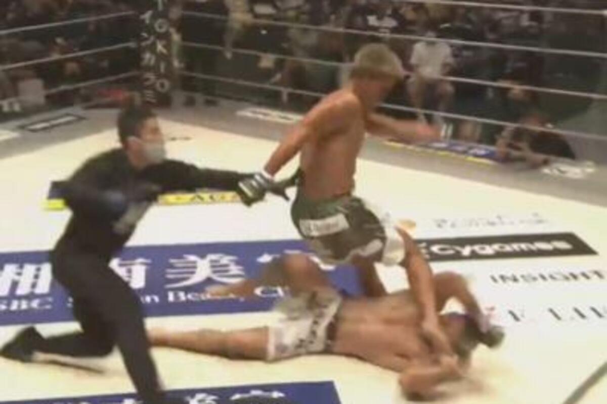 Iako je već tada bilo jasno da će pobediti klasičnim nokautom, 30-godišnjem Japancu to nije bilo dovoljno već je hteo da "overi" protivnika i to tako što ga je šutnuo nogom u glavu dok je ovaj ležao na podu već nokautiran.
