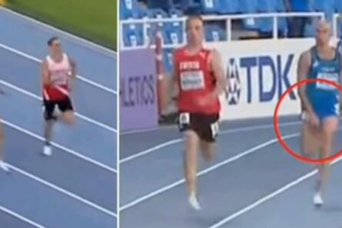 Mladi atletičar učestvovao je u trci na 400 metara u desetoboju na Svetskom prvenstvu za juniore u Kaliju i tom prilikom mu se pocepao šorc.