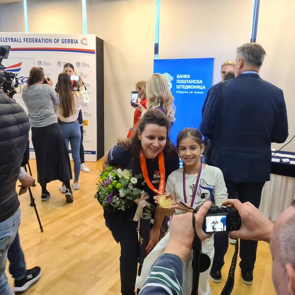 Srpske odbojkašice izašle su u susret mladim obožavaocima pošto su delile autograme. Bianka Buša, Bojana Milenković i Teodora Pušić rado su se fotografisale sa najmlađima i potpisivali lopte i majce.