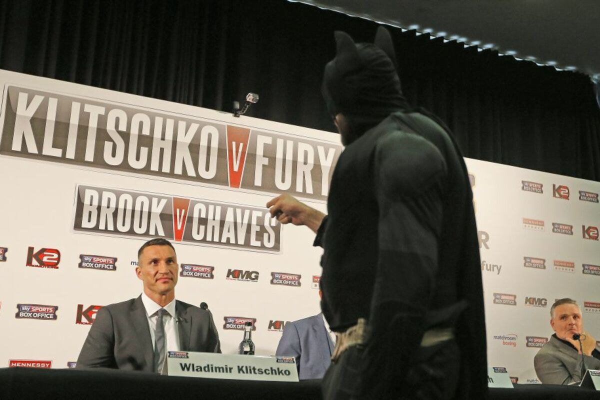 Naime, Fjuri je obučen u kostim Betmena uleteo u salu za novinare i uputio pretnje Kličku, da nema šta da traži u meču sa njim.