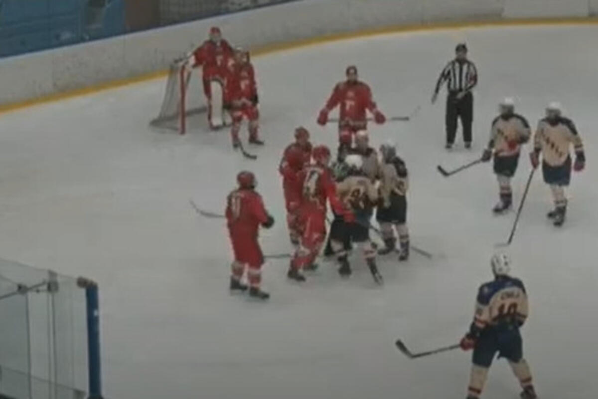 To je izazvalo momentalnu reakciju, pa je krenuo žestok obračun u kojem su učestvovali i drugi hokejaši dva tima.