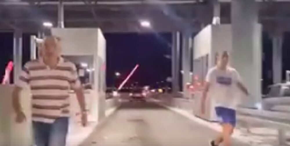 Stali smo na naplatnoj rampi gde mi je otac rekao idem da ga pitam zašto to radi i zašto ugrozava našu bezbednost. Otac je izašao a ja sam ostao da sedim u kolima. Kada sam video da je Tatjanin suprug krenuo kolima da udari mog oca u tom trenutku sam i ja izašao sa namerom da smirim oca, tad je već počeo snimak, na snimku se vidi kako prilazim svom ocu i i povlačim ga nazad, nakon čega moj otac počinje da odlazi od kola. A Tatjanin suprug snima mobilnim telefonom i drži srednji prst iza kamere i priča "Ajde pičke". Ja kad sam to video udaram mu levi retrovizor i on kreće unazad. Dok je vozio unazad pokazuje nam srednji prst, u tom trenutku je moj otac potrčao premu njemu.