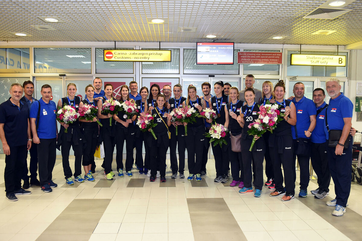 Veliki broj rodbine i prijatelja, kao i delegacija Odbojkaškog saveza Srbije na čelu sa predsednikom Zoranom Gajićem i potpredsednikom Ivanom Miljkovićem ih je dočekala.
