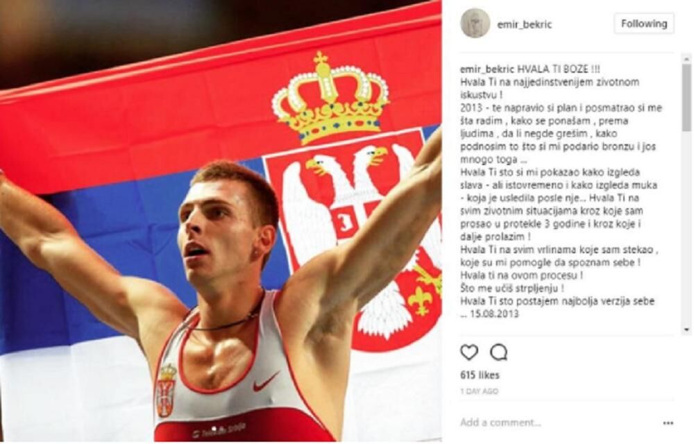 Emir Bekrić objavio je na svom Instagram profilu poruku koja je sve vratila u prošlost i dane kada je srpski atletičar napravio najveći uspeh u karijeri.