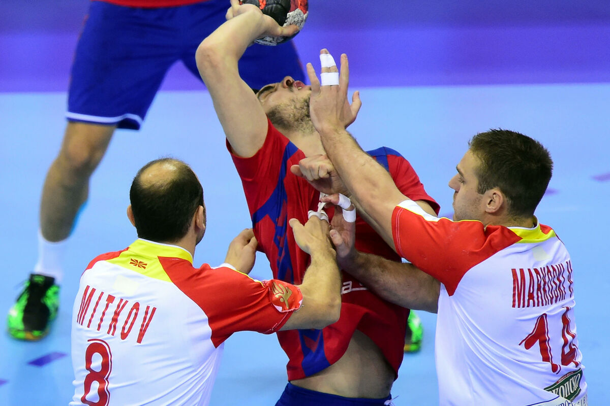 Usledio je period izjednačene igre (8:8), nakon čega Makedonci stižu do dva gola prednosti, naš tim se vraća u egal pogocima Vujića, Vujina, Đorđića i Radivojevića, ali Marsenić ne uspeva da potpuno izjednači na 12:13. Na kraju, gosti odlaze na poluvreme sa golom prednosti – 14:13. Makedonci su nastavili da kontrolišu ritam meča, u narednih 15 minuta su imali gol do dva prednosti (21:19), a uprkos povremenim isključenjima rivala, Srbija ne uspeva da preuzme inicijativu. Gosti povećavaju na 23:20, a preko sjajnog trija Lazarov, Georgievski, Stoilov stižu i do četiri gola prednosti (25:21). Cvetković traži tajm-aut, menja odbranu na 6-0, ali Lazarov i Taleski održavaju razliku. Međutim, u samoj završnici, nakon isključenja Stoilova, Srbija uz pomoć "flastera" nad Lazarovom smanjuje na 28:26. Ipak, "Orlovi" nisu imali pravo rešenje za golmana Ojleskog u samoj završnici, pa nisu uspeli i da preokrenu rezultat.