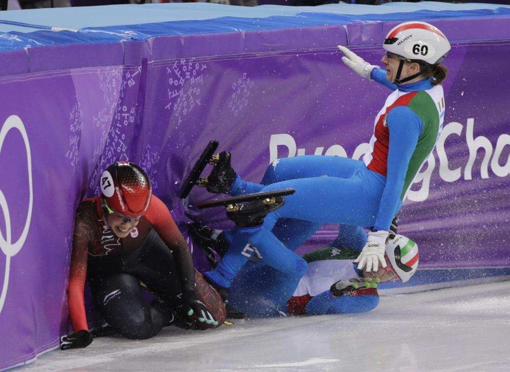 Tokom trke (27 krugova ukupno), vodila se velika borba između Korejanki, Kanađanki i Kineskinja. U jednom trenutku, takmičarka iz Južne Koreje se sudarila sa rivalkom iz Kanade, a onda je nastao pravi haos, poput domino efekta. Korejanke su plakale od sreće, a Kineskinje od tuge. Ovo je već drugi put da im se dešava ista situacija na olimpijskim igrama. I 2006. godine u Torinu na ledu su osvojile medalju, ali im je ona, zbog prestupa, oduzeta.