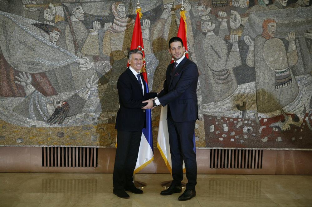 Ministar omladine i sporta Vanja Udovičić primio je u Palati Srbija predsednika Svetske atletske federacije Sebastijana Koua, koji je u poseti Beogradu povodom međunarodnog takmičenja, trećeg "Serbian open" mitinga koji se održava ove srede u Atletskoj dvorani na Banjici.