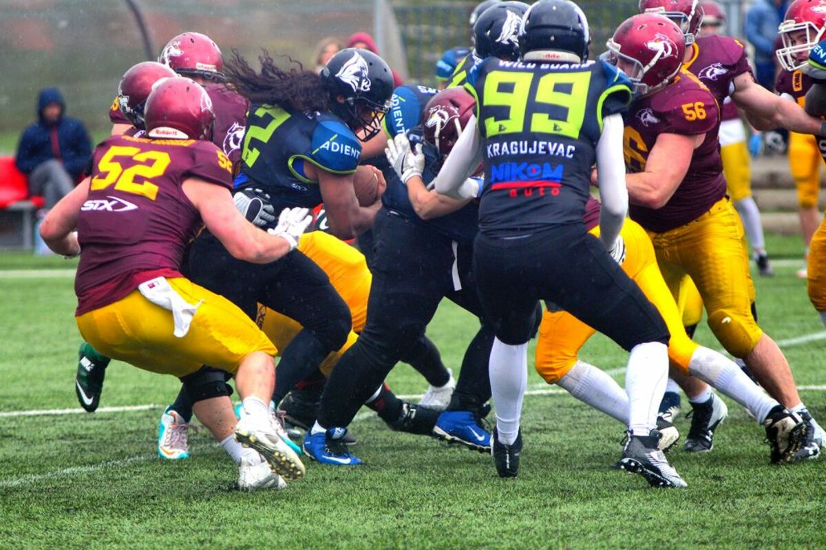 Na otvaranju Prve lige Srbije, Kragujevac Wild Boarsi su na sjajan način krenuli pohod na treću uzastopnu titulu šampiona Srbije, ubedljivo savladavši najveće rivale, beogradske SBB Vukove rezultatom 38:21 (7:14, 21:0, 3:7, 7:0).