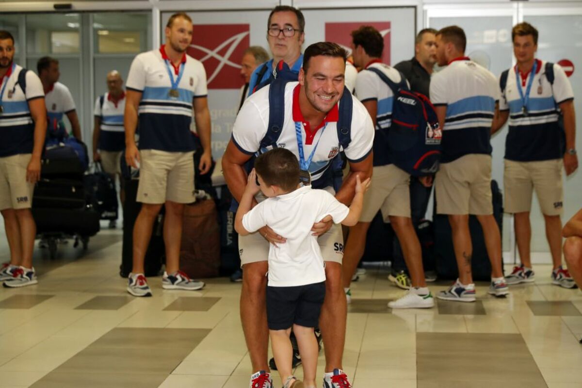 Vaterpolo reprezentacija Srbije svečano je i slavljenički dočekana u Beogradu, nakon osvajanja Evropskog prvenstva u Barseloni.
