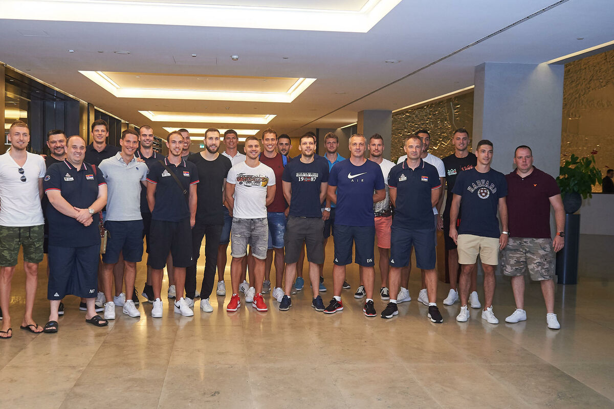 Seniori Srbije na okupljanju su imali lepo iznenađenje, jer ih je posetio bivši kapiten Dragan Stanković koji je dojučerašnjim saigračima poželeo uspeh na Svetskom prvenstvu.