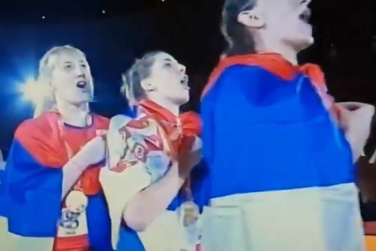 Trenutak koji će zauvek ostati upamćen u istoriji srpskog sporta - srpske odbojkašice su se popele na pobedničko postolje i zvanično postale svetske šampionke!