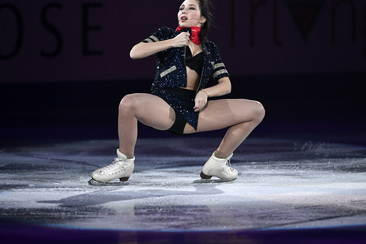 Ona se pojavila na ledu u kostimu stjuardese, a nastup je završila samo u grudnjaku.