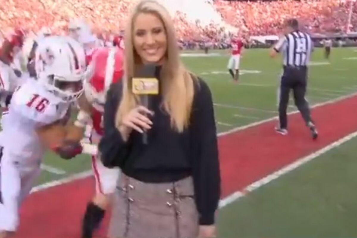 Ona je izveštavala sa jedne utakmice, ali nije videla da su dva igrača bila u žestokom naletu u njenom pravcu, nisu mogli da se zaustave na vreme pa su oborili reporterku američke televizije na zemlju.