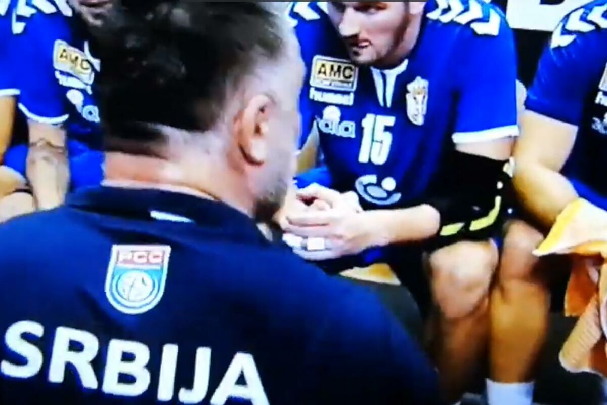 Selektor srpskih rukometaša Nenad Peruničić je na jednom od tajm-auta u drugom poluvremenu.