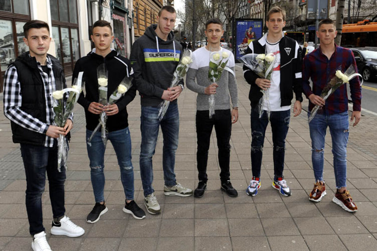 Ispred crno-belog butika na Terazijama Đerlek, Šehović, Pavlović, Bosić, Stevanović i Popović poklanjali su bele ruže slučajnim prolaznicama, želeći da im još više ulepšaju ovaj dan i pošalju poruku da je nasilje nad ženama za svaku osudu!