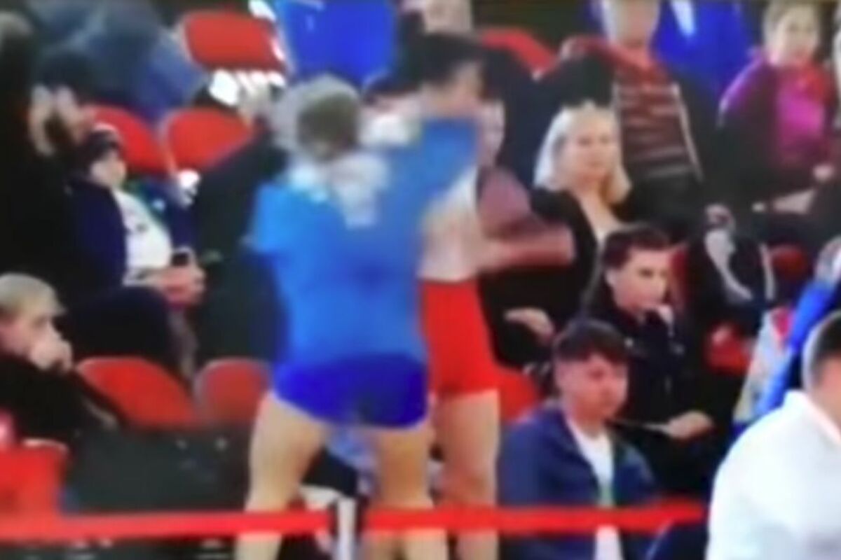 Na snimku sa takmičenja vidi se kako najpre čovek u crvenoj trenerci (pretpostavlja se da je trener Litvinceve) izaziva incident i udara drugog muškarca.