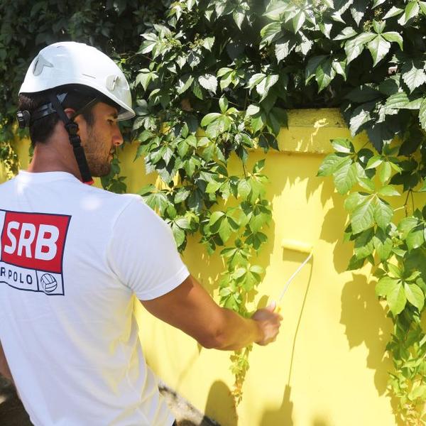 Selektor vaterpolo reprezentacije Dejan Savić i igrači Nikola Jakšić, Strahinja Rašović, Radomir Drašović i Nemanja Vico su zajedno sa đacima učestvovali u sređivanju dvorišta Osnovne škole za decu sa smetnjama u razvoju "Dragan Kovačević".