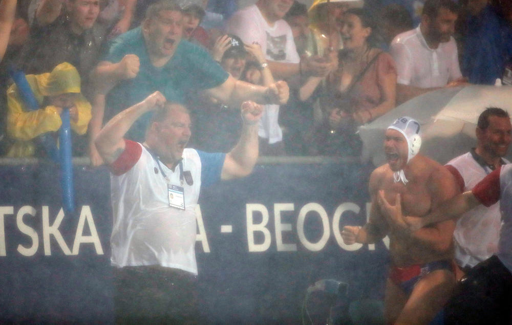 Igralo se po neviđenom kijametu, kiša je lila kao iz kabla, ali utakmica nije prekinuta, dok je veliki deo publike ostao i po najvećem pljusku da bodri srpske vaterpoliste do samog kraja.