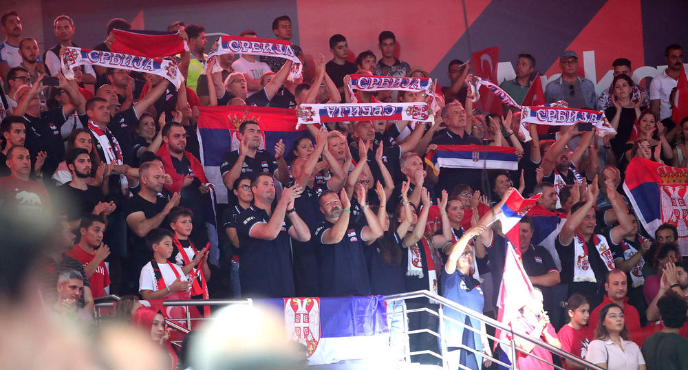 22:18 - Bunio se sada selektor Turske, Gvideti, ali nije bilo pecanja i poen za Srbiju. To je pokrenulo zaglušujuću buku na koju Stefana Veljković odgovara asom.