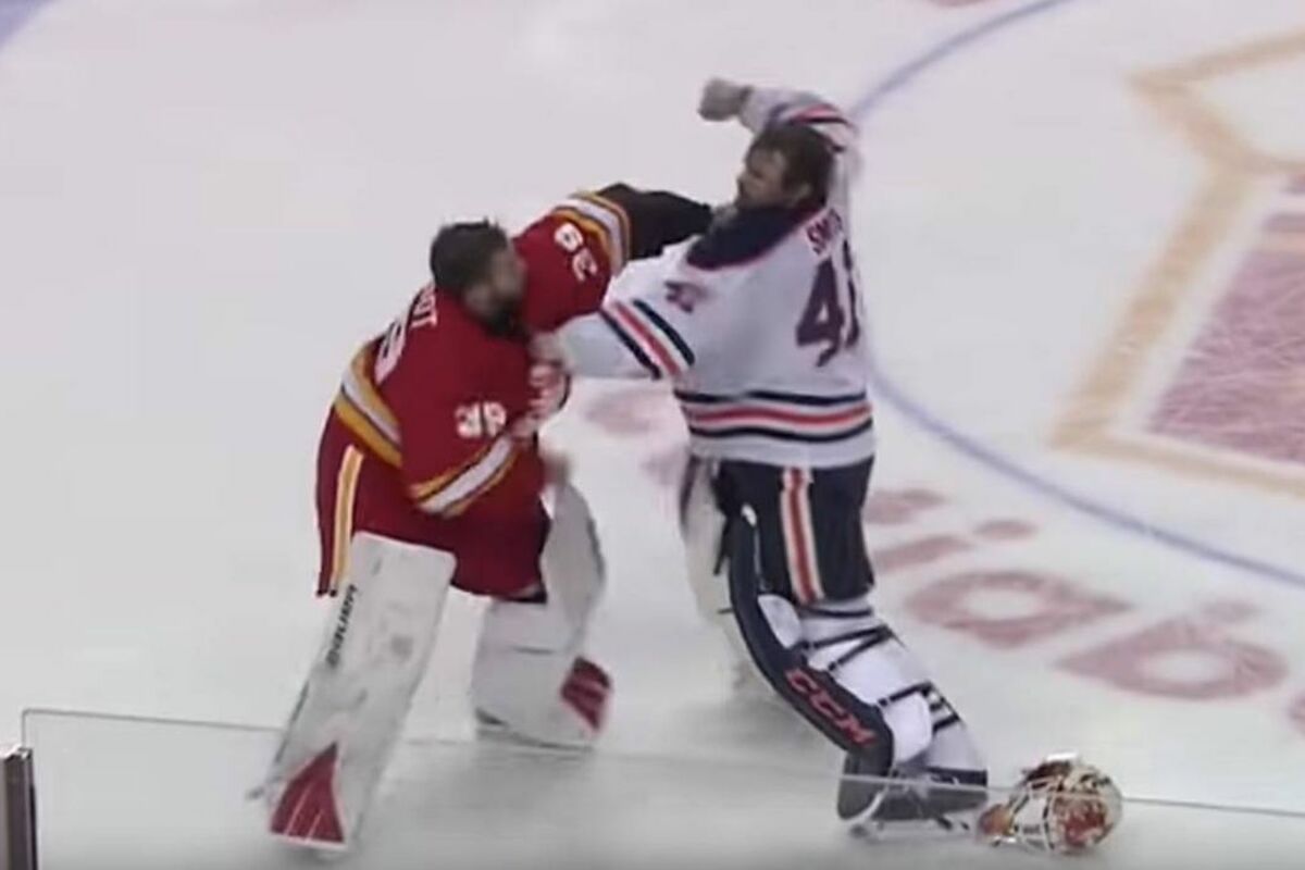 Radi se o dva vrlo žestoka rivala u NHL ligi pa napeta atmosfera i čvrsta utakmica nisu bili nikakvo iznenađenje. Na kraju druge trećine je napetost eksplodirala u vidu masovne tuče gotovo svih hokejaša koji su u tom trenutku bili na ledu. To je podrazumevalo i obračun dva golmana; Majka Smita iz Oilersa i Kama Talbota iz Flejmsa. Naravno uz ogromno oduševljenje publike jer je to bila prva tuča dva čuvara mreže u NHL-u još od davne 2013.