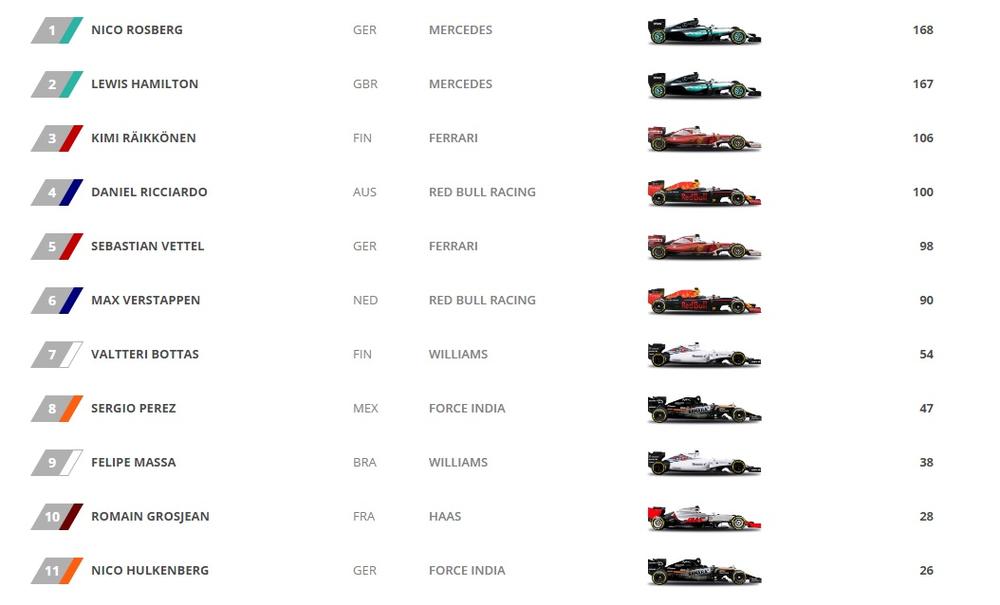 Drugi je bio njegov klupski kolega Luis Hamilton, potom slede vozači Red Bula Danijel Rikardo i Maks Ferstapen, a onda Sebastijan Fetel, Karlos Sains, Fernando Alonso i ostali.