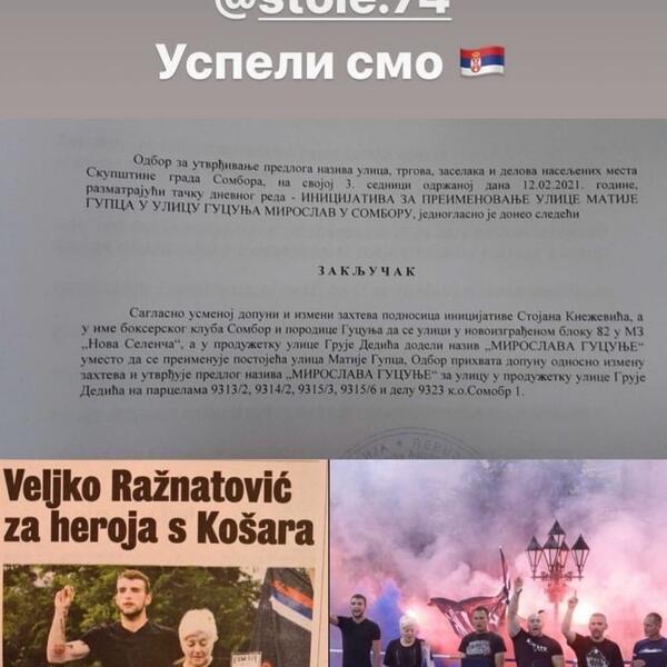 Na društvenim mrežama, s velikim ponosom, Ražnatović je iz daleke Rusije podelio vest o tome da je Gucunja dobio ulicu u Somboru.