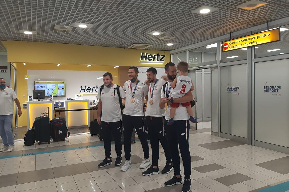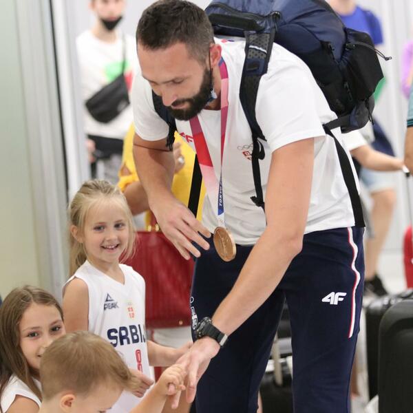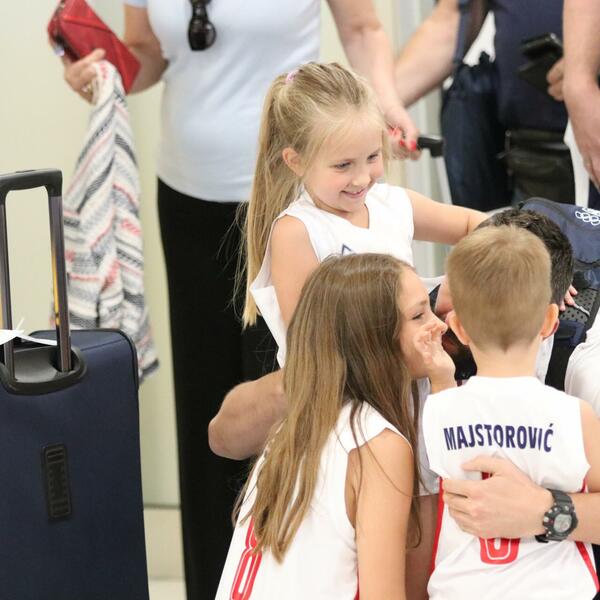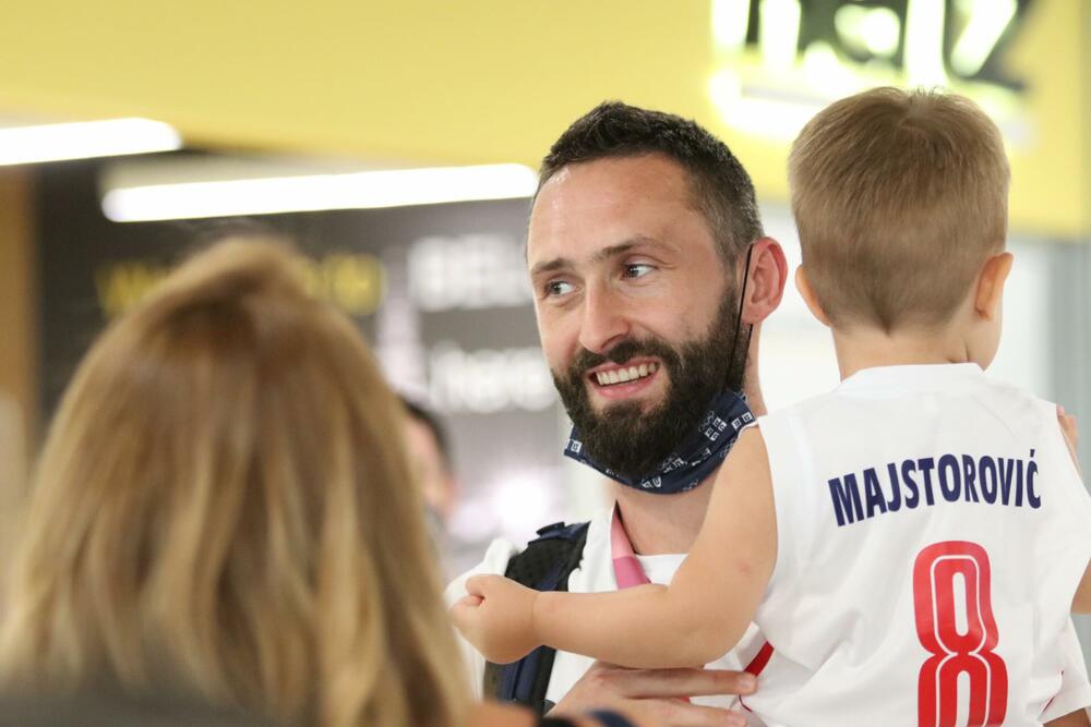 Član srpskog basketaškog tima Dejan Majstorović je pri sletanju na aerodrom Nikola Tesla iz Tokia po povratku sa Olimpijskih igara bio dočekan od strane svoje porodice.