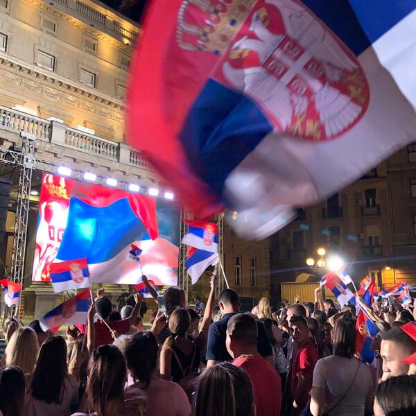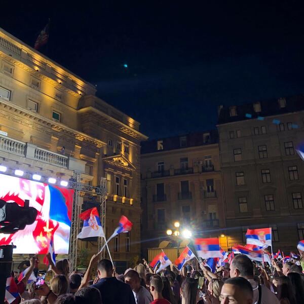 20:55 - Građani željno iščekuju izlazak naših heroja na balkon uz muziku.