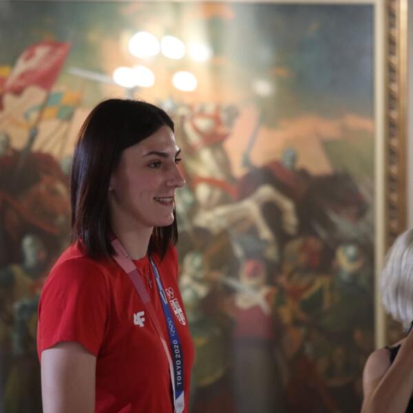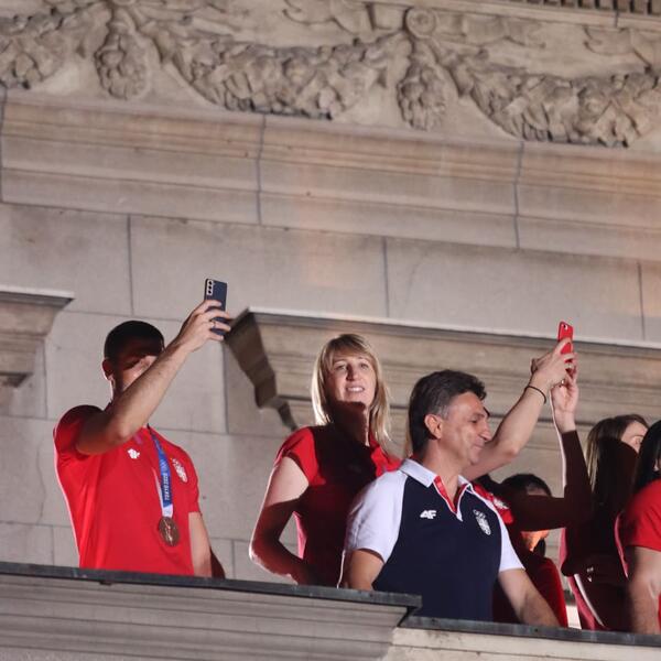 21:18 - Posle Milenka, na balkon je izašla Tijana Boganović olimpijka koja je osvojila bronzu u tekvondu, sa njom je i trener Dragan Donević.