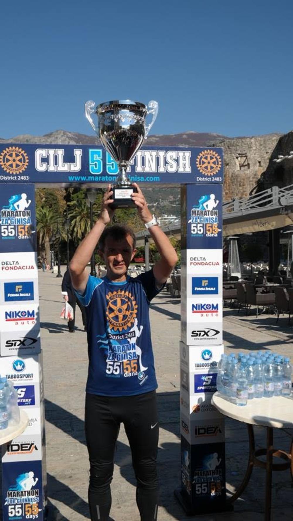 Ovaj Kragujevčanin je svakog dana trčao po jednu maratonsku deonicu, a poslednja mu je bila u Crnoj Gori od Bara do Budve gde je slavljenički protrčao kroz finiš.