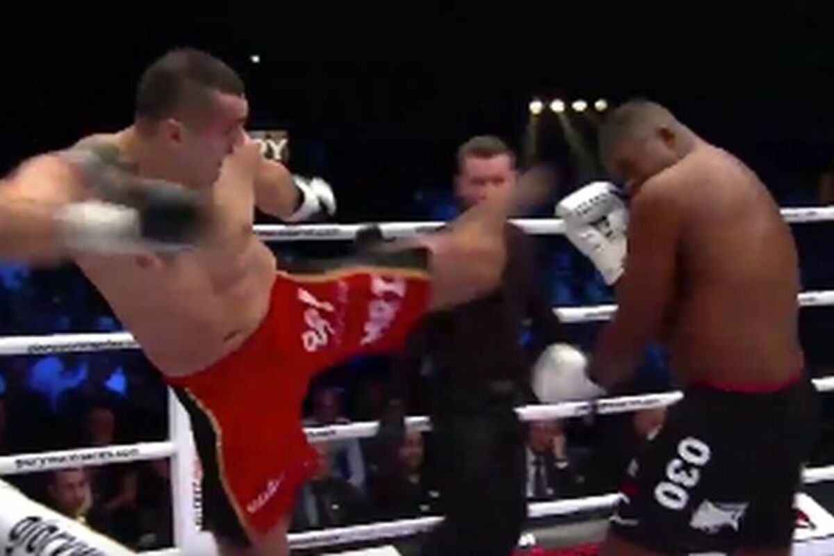 On je protivniku iz Surinama Džafaru Vilnsu "zveknuo" haj-kik posle čega je nesrećni tamnoputi učesnik pao na pod.