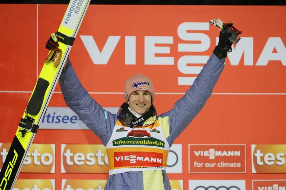 Nemački ski skakač Karl Gajger pobedio je danas u Nojštatu, u okviru Svetskog kupa.