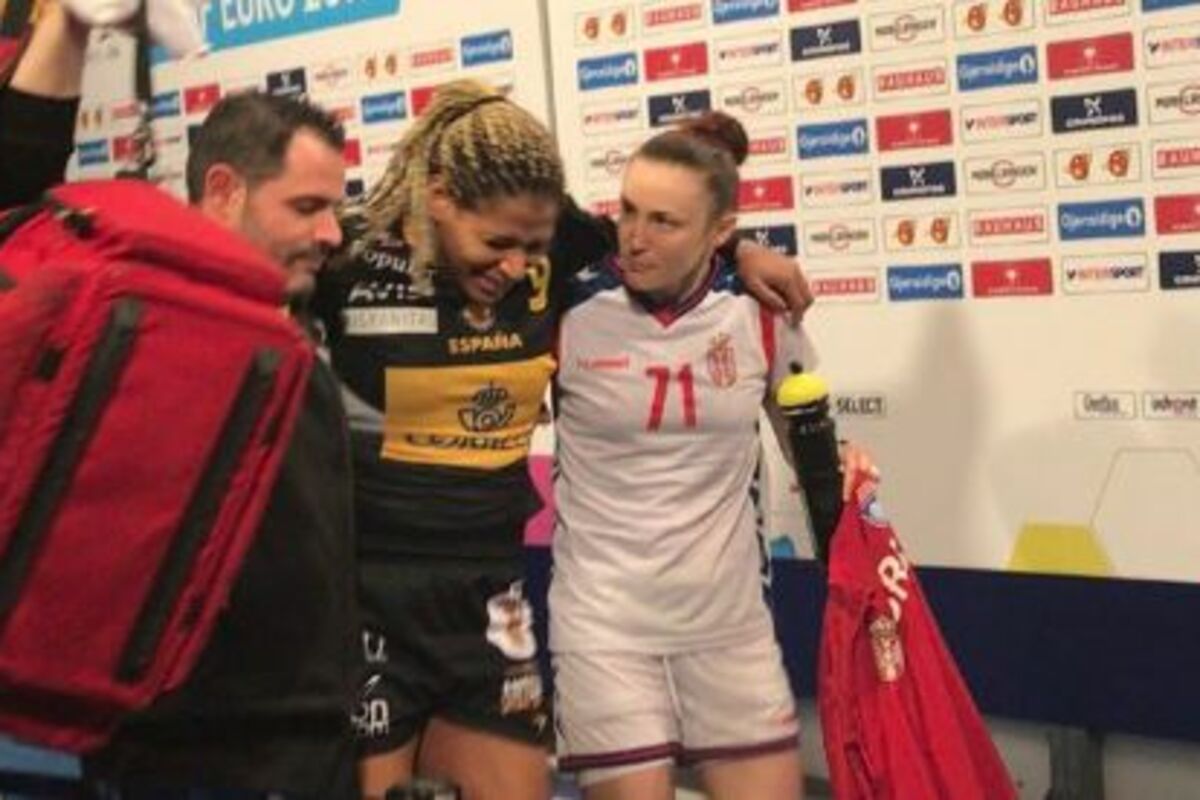 Tokom prvog poluvremena povredila se jedna od najboljih španskih rukometašica Marta Mange. Po završetku prvog dela igre ona je krenula u svlačionicu, a Kristina joj je pomogla da napusti teren. Ova slika je oduševila sve širom Evrope i postala je hit na društvenim mrežama.