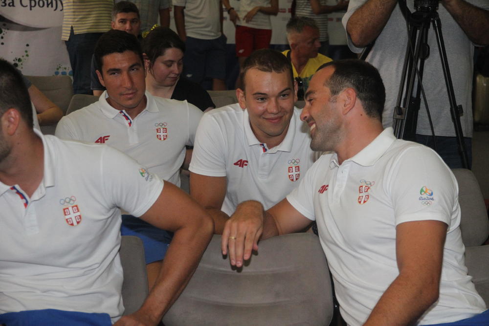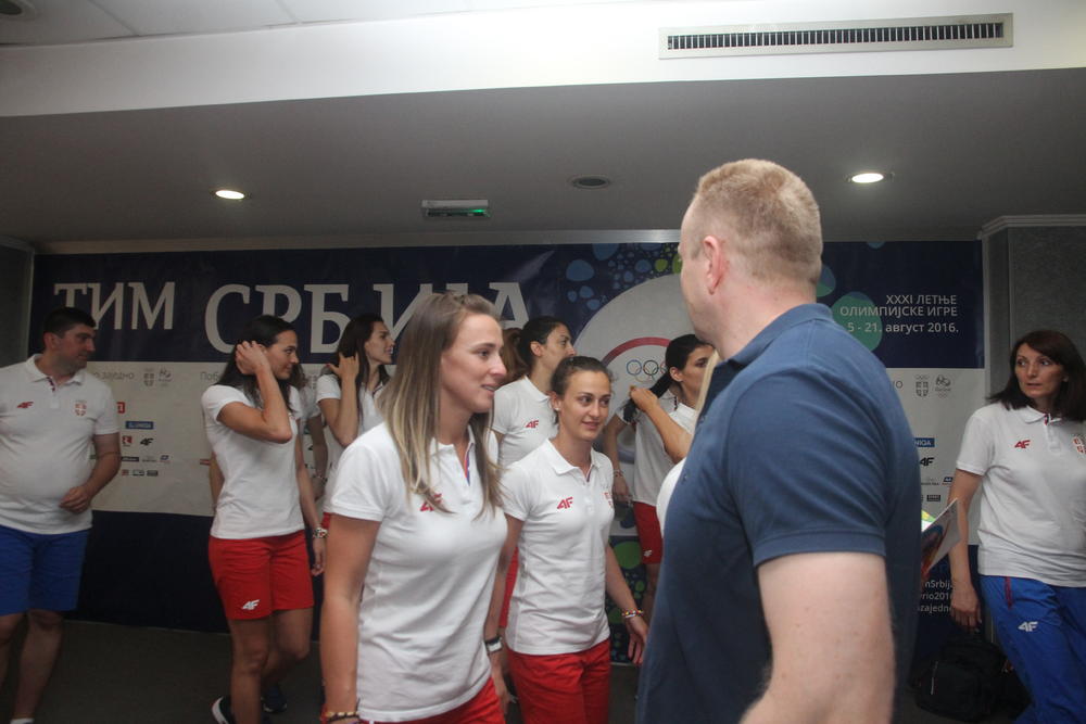 "Danas jedino mogu da se zahvalim Olimpijskom komitetu Srbije što je na ovom putovanju spojio najlepše i najzgodnije sportistkinje i najbolje i najzgodnije sportiste. Očekujem da, ako vaterpolo uzme medalju, da shvate da je to zasluga i nas iz košarke, a boga mi i obrnuto. Želim i jednima i drugima puno sreće", rekao je predsednik Košarkaškog saveza Srbije Dragan Đilas. Potpredsednik Olimpijskog komiteta Žarko Paspalj naveo je da je ponosan što je danas put Rija ispratio žensku košarkašku i mušku vaterpolo reprezentaciju.